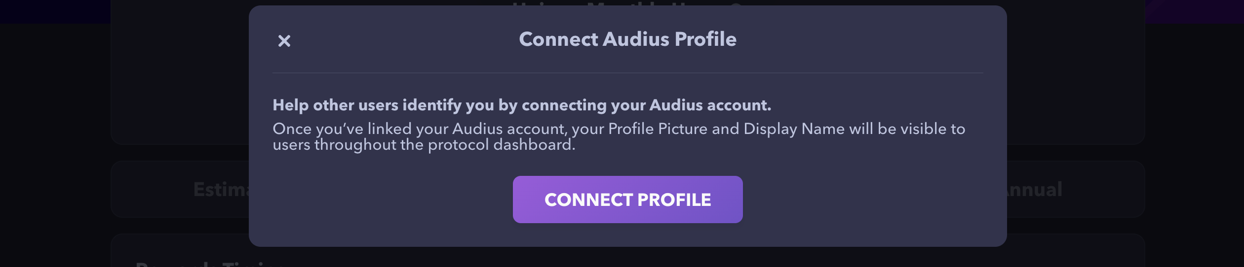 Once you've linked your Audius account, your Profile Picture and Display Name will be visible to users throughout the protocol dashboard.