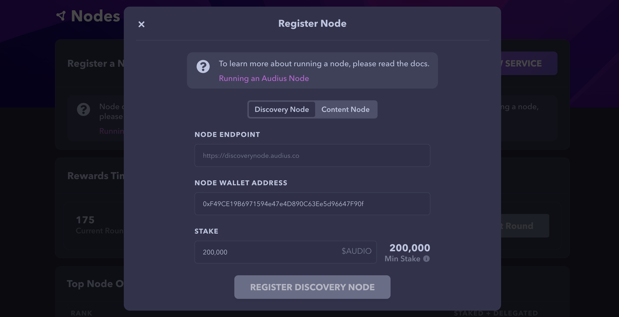 - Navigate to the Audius Protocol Dashboard Nodes Tab